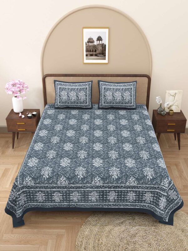 100% Pure Cotton Traditional Printed Bedsheet for Double Bed King Size Bedsheet with 2 Pillow Covers